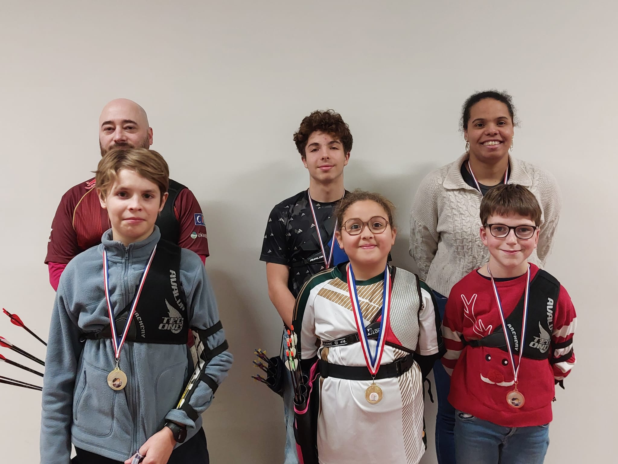 Le week-end fut intense pour les archers de notre club, alors que Cyrille et Stéphane étaient à St Jean de Braye pour leur 4ème week-end de formation d’entraineur, Clément accompagné d’Éric et Laurence a partagé le pas de tir avec les plus grands archers internationaux lors du Nimes Archery Tournament 2026. Avec un record personnel de 570 points, il finit 8ème de sa catégorie U21. Et c’est à Auneau, que nos archers débutants et compétiteurs ont fait trembler le pas de tir. Accompagnés et coachés par Evelyne, nos 7 archers débutants jeunes et adultes, sont tous montés sur le podium. Pour ce dernier concours avant le Championnat départemental, nos confirmés ont raflé 6 médailles. Jeanne (U15 Cl) et Yoan (S2 Cl) nous font leur record personnel de la saison dans leur catégorie respective avec 553 et 535 points et montent sur la 1ère et 2ème marche du podium. Kylian (U18H Cl) et Florian (U21H Co) terminent 1er du concours, quant à Lucie (U18F Cl) et Nathalie (S1F Cl) elles finissent 2ème.